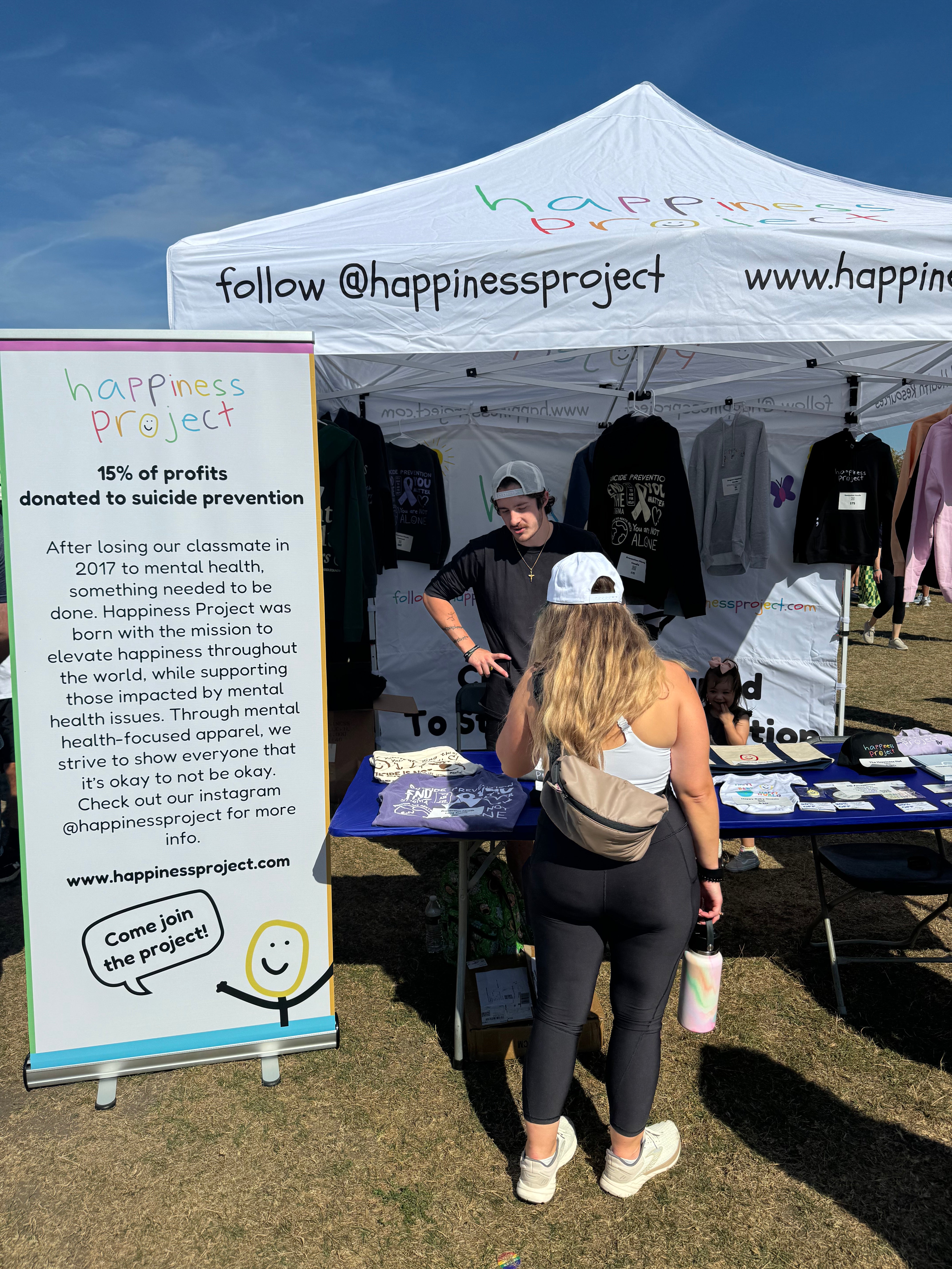 After losing our classmate in 2017 to mental health, something needed to be done. Happiness Project was born with the mission to elevate happiness throughout the world, while supporting those impacted by mental health issues. Through mental health-focused apparel, we strive to show everyone that it's okay to not be okay. With every purchase, you are helping change the conversation around mental health.