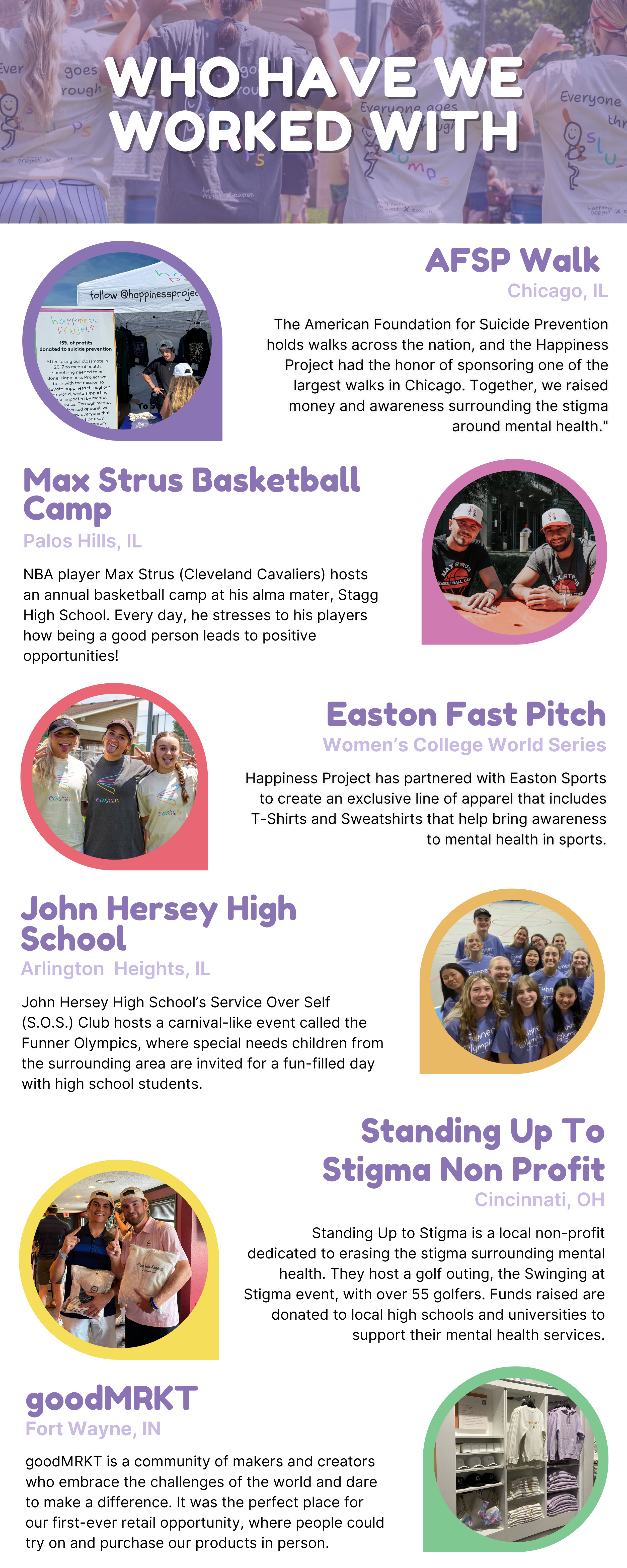 We love partnering with companies, schools, hospitals, & more to spread mental health awareness & fundraise for charity!